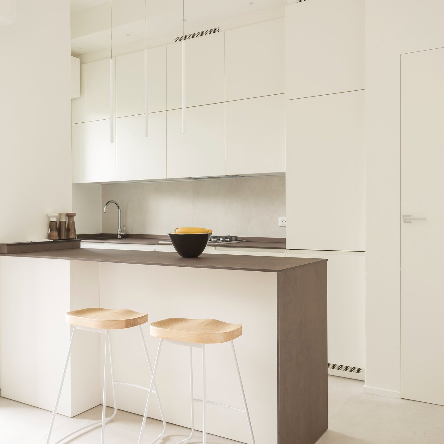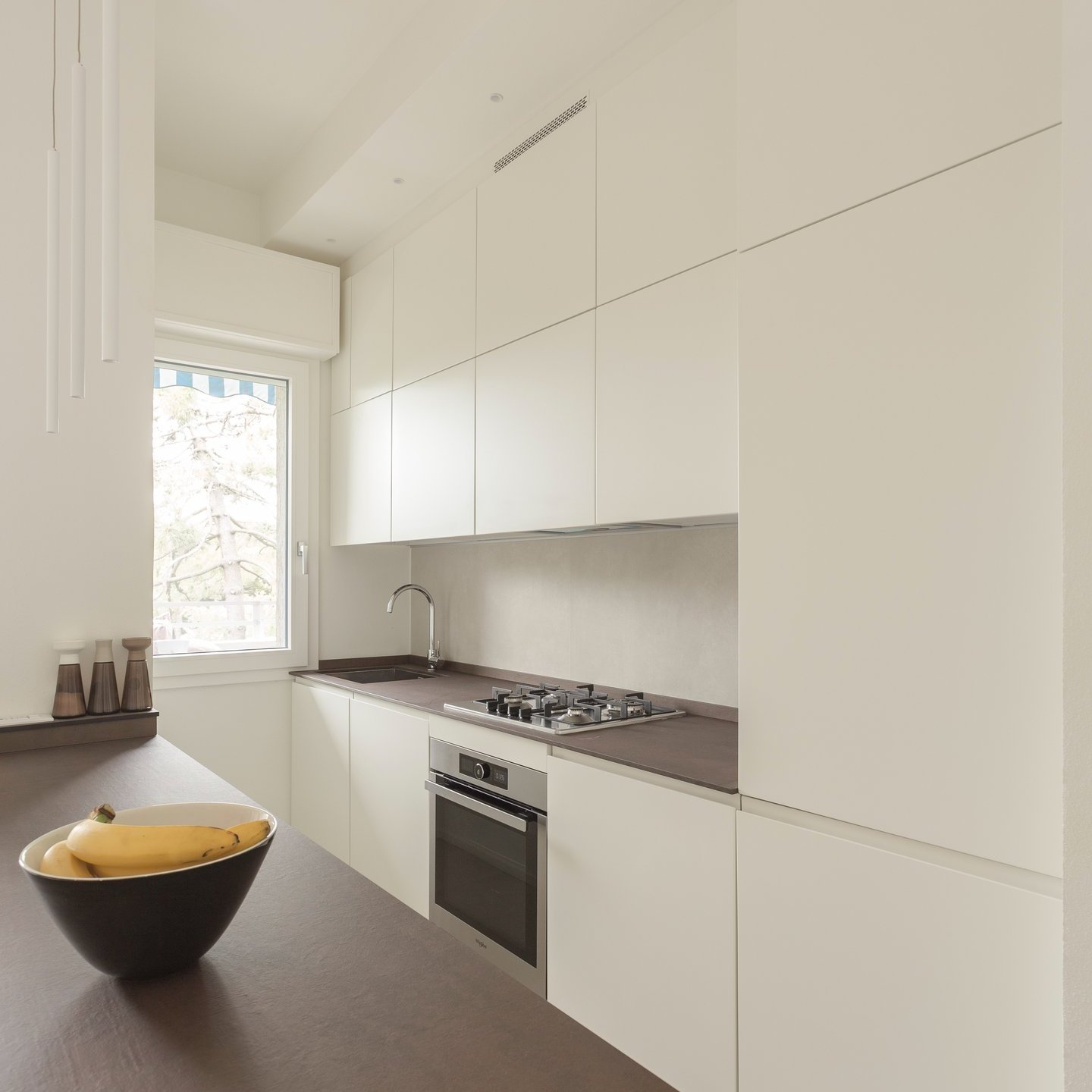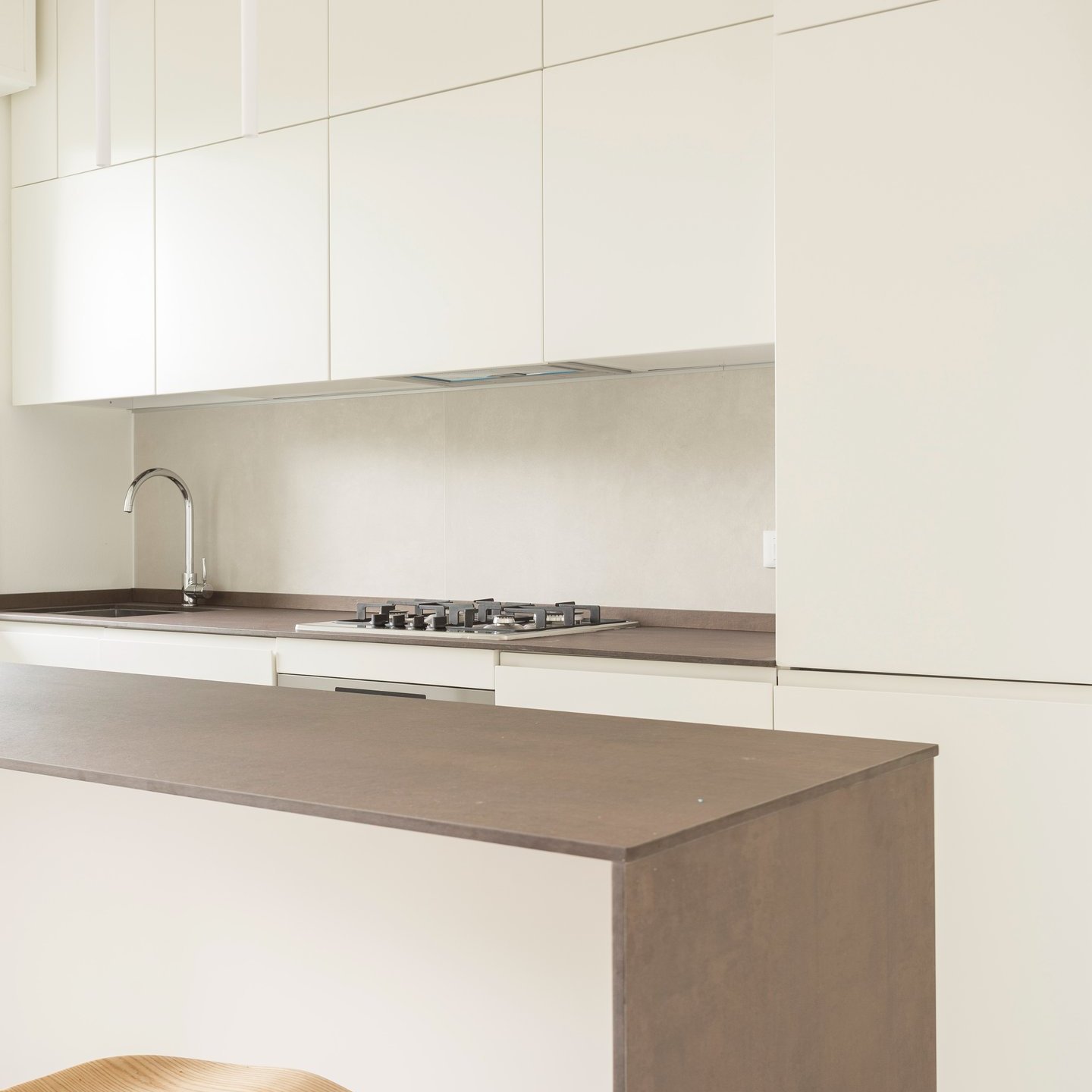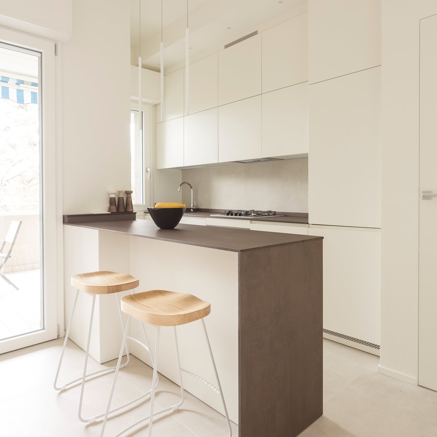La palette cromatica, volutamente monocolore, si ispira alle tonalità della sabbia: una scelta che amplifica la luminosità naturale e restituisce agli ambienti un’atmosfera rilassata. La luce, filtrando attraverso le grandi vetrate, diventa la vera protagonista, disegnando volumi e superfici in un equilibrio sobrio e accogliente.